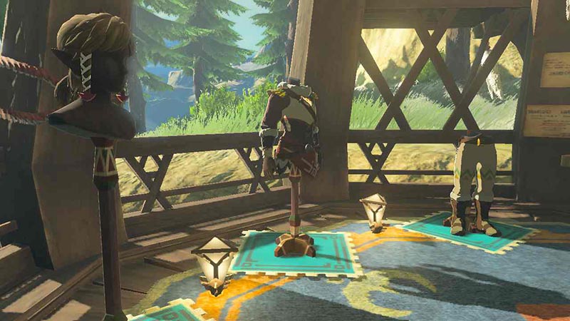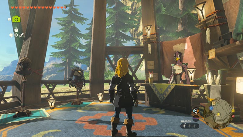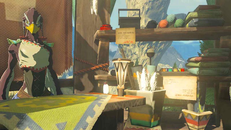 「紅孔雀」はリトの村の南西に位置する仕立て屋で、主にハイリア人に向けた防寒具を各種取り揃えています。リト族が作る布製品や工芸品にはカラフルな模様が描かれていることが多く、機能性に加えデザイン面でも高い人気を誇ります。
