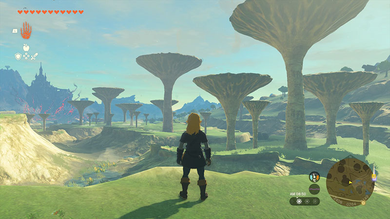 そんな街道沿いの北側、ハイラル丘陵のふもとに広がるのがセレス平原で、特徴的な形の木々が立ち並ぶその光景は、一度見たら忘れられないインパクトがあります。