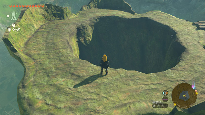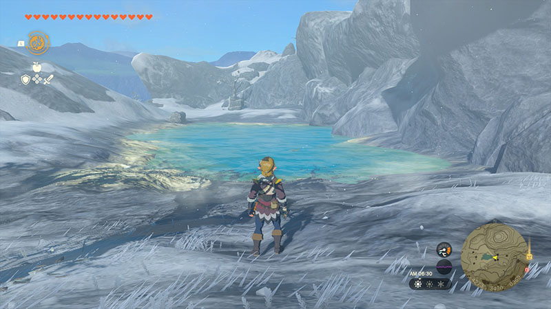 湖の地下であるこの洞窟は湿度が高く、日差しも届かないのでハイラルダケやヒカリダケといったキノコ類が多く自生しています。鉱床も点在するので、道具があればコハクやオパールといった宝石も採取できるでしょう。