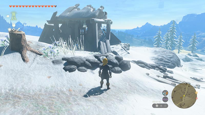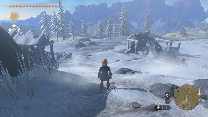 しかしリトの村と雪原の馬宿をつなぐ街道沿いには、タバンタ村跡と呼ばれる廃村があって、かつてはハイリア人も暮らしていたのではないかと思わせる環境が残されています。