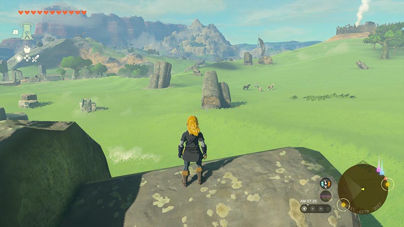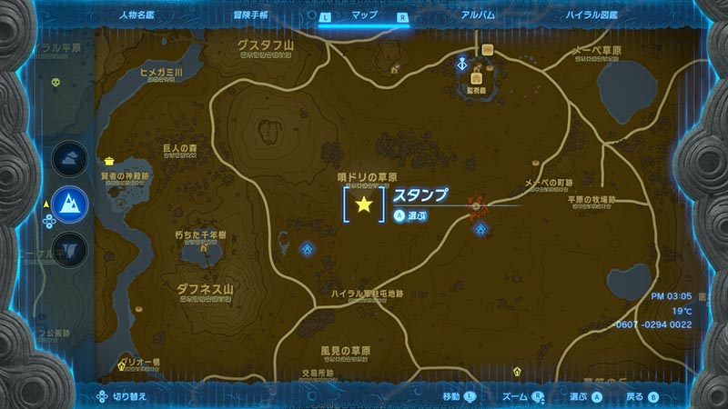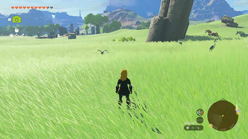 唄ドリの草原は、ハイラル屈指の自然豊かなエリアで、多様な野生動物が生息しています。街道の近くを歩くだけでも、ヘイゲンギツネやモモイロサギなど様々な種類の動物と出会えるはずです。