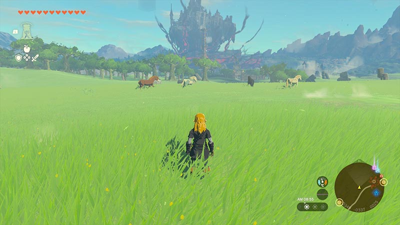 ハイラルでは馬の捕獲が自由なので、体力に自信があれば手懐けてみるのも面白いでしょう。ただし馬は臆病で、驚かせると突進してきたり、後ろ足で蹴ってくることも。気づかれないように身をかがめ、慎重に近づくのがコツです。